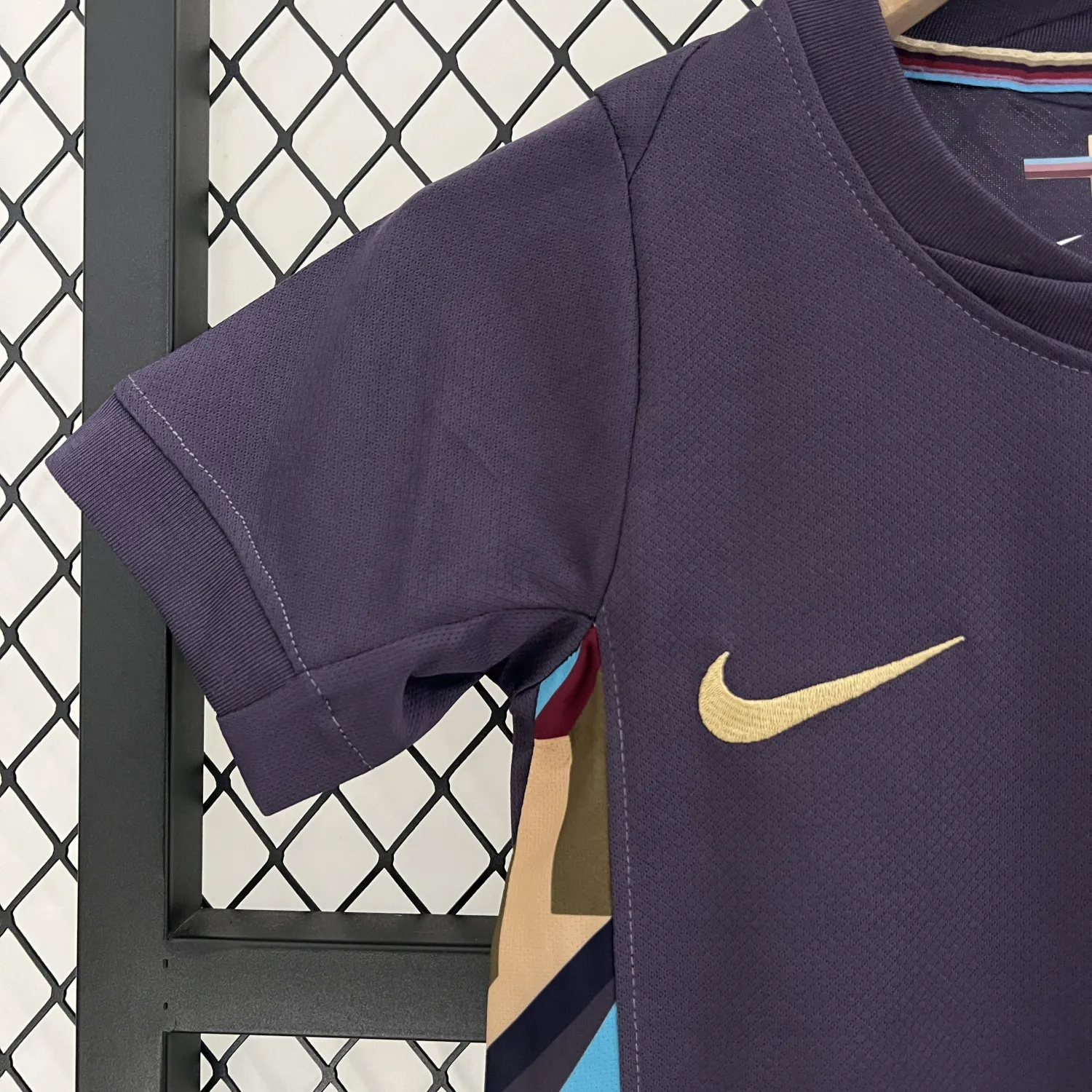 The England Away Kids 2024 Kit is a stylish and comfortable way for young fans to show their support. Inspired by classic designs with a modern twist, this kit features a striking red jersey with subtle detailing, complemented by navy shorts and matching socks. Made from lightweight, breathable fabric, it ensures all-day comfort during play or cheering on the team. The shirt proudly displays the iconic Three Lions crest and Nike swoosh, symbolizing passion and pride. Designed with durability in mind, it’s perfect for active kids. Let your little one shine like their heroes in the England Away Kids 2024 Kit!